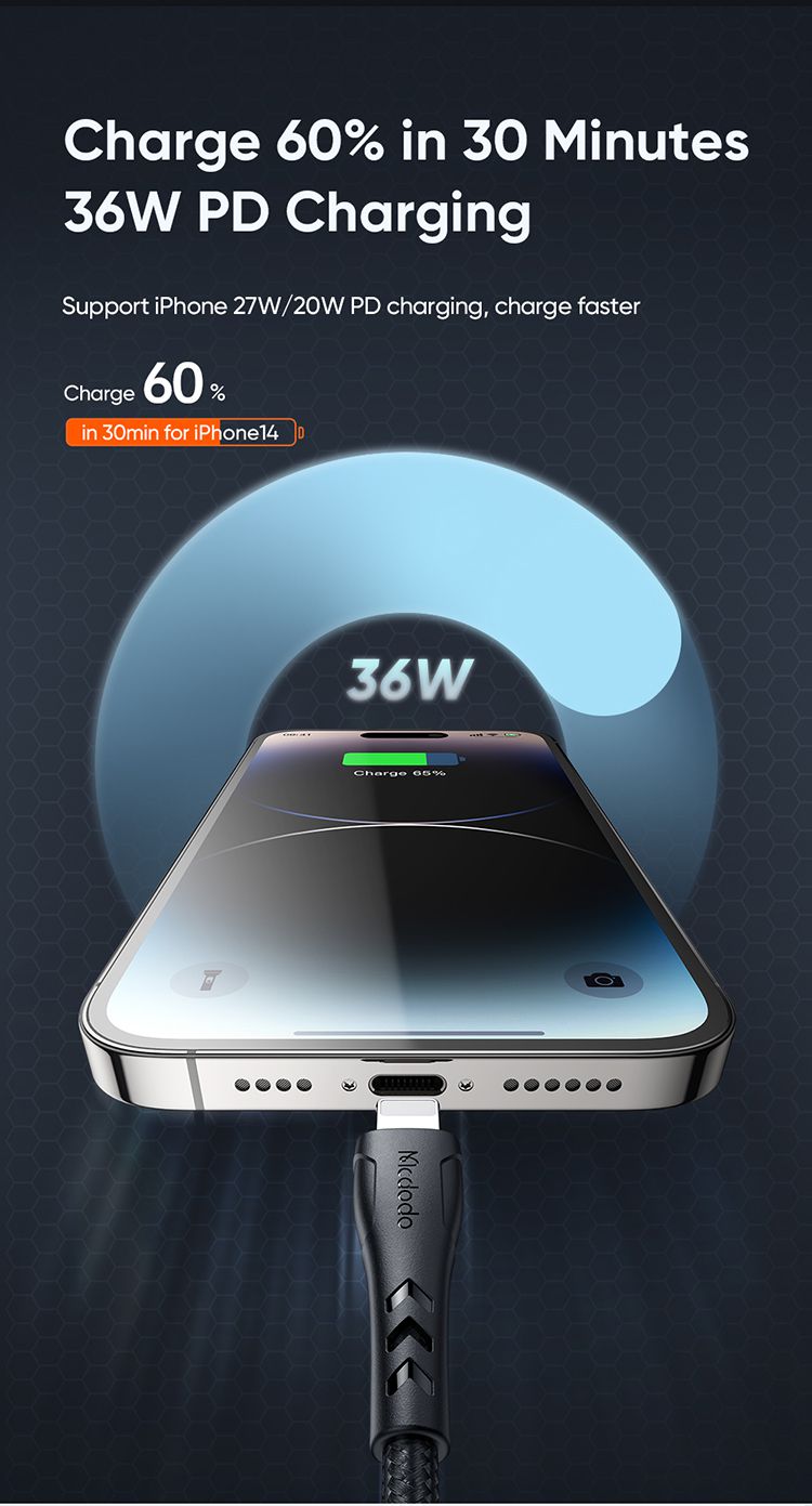 - صبحهای پرمشغله: از خواب بیدار میشوید و متوجه میشوید که شارژ گوشیتان کم است. کافیست کابل Mcdodo CA-4571 را به یک آداپتور PD متصل کنید و در عرض مدت زمان کوتاهی که آماده میشوید، گوشیتان تا حد زیادی شارژ شده و آماده یک روز پربار است. دیگر نگرانی از بابت دیر رسیدن به محل کار به دلیل خالی شدن باتری وجود نخواهد داشت.