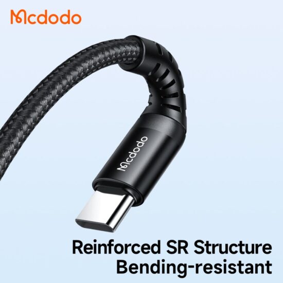 - کانکتورهای تقویتشده: نقاط اتصال کابل به کانکتورها (دو سر تایپ سی) از حساسترین قسمتها هستند که معمولاً دچار شکستگی میشوند. مک دودو با تقویت این نقاط و استفاده از مواد انعطافپذیر و در عین حال مستحکم، عمر مفید کابل را به طرز قابل توجهی افزایش داده است. این طراحی هوشمندانه، مقاومت در برابر خم شدنهای مکرر را تضمین میکند و از قطعیهای ناخواسته جلوگیری به عمل میآورد.