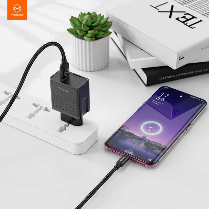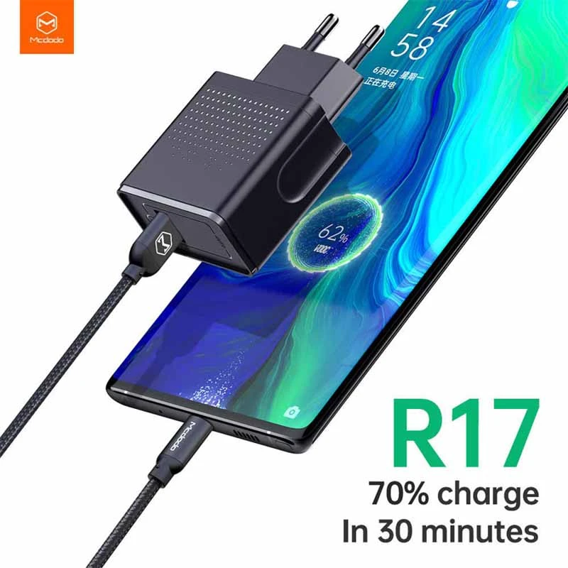 شارژر دیواری ۲۲.۵ واتی و کابل شارژ تایپ سی مک دودو
