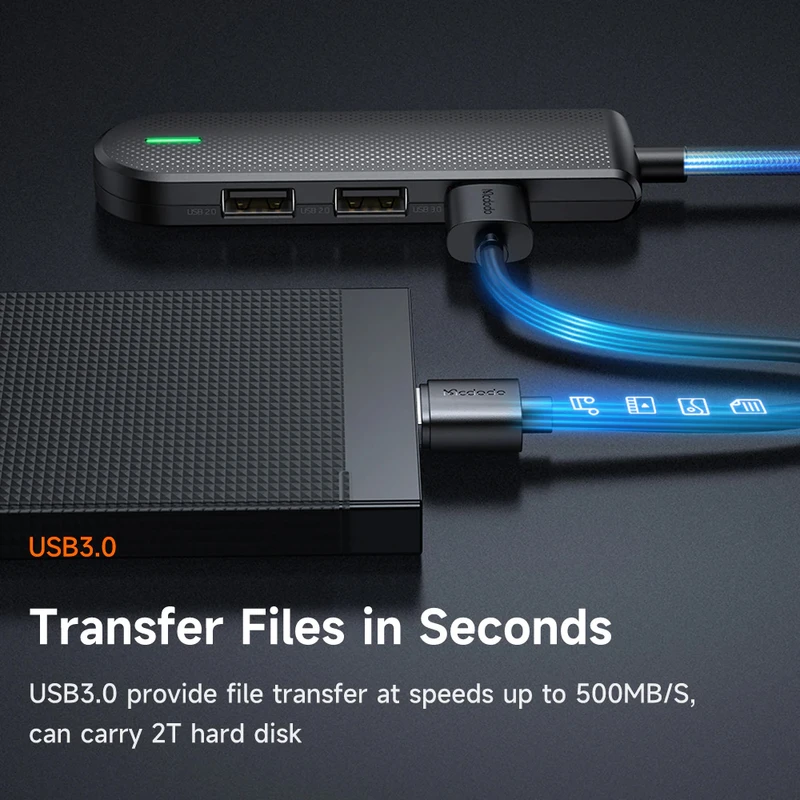 هاب مک دودو مدل HU-1430 مجهز به دو پورت USB 3.0 است که سرعت خیرهکننده 5 گیگابیت بر ثانیه (5Gbps) را برای انتقال دادهها ارائه میدهد. این سرعت، ۱۰ برابر سریعتر از USB 2.0 است و به شما امکان میدهد تا: