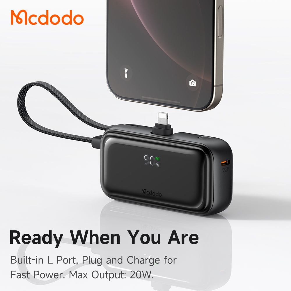 تصور کنید در یک کافهی شلوغ نشستهاید و ناگهان نوتیفیکیشن کمبود شارژ ظاهر میشود. به جای جستجو در کیف برای یافتن کابل مناسب و یک پاوربانک بزرگ، به راحتی Mcdodo MC-780 را از جیب خود بیرون میآورید. اگر آیفون دارید، مستقیماً آن را به سوکت لایتنینگ پاوربانک متصل میکنید. اگر از گوشی اندرویدی یا دستگاهی با پورت Type-C استفاده میکنید، کابل متصل را به دستگاه خود وصل کرده و شروع به شارژ میکنید. به همین سادگی، بدون نیاز به گشتن یا باز کردن گره کابلها.