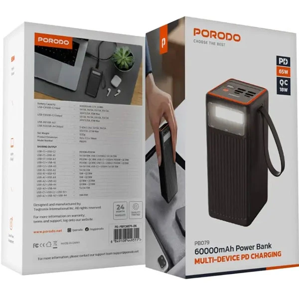 پاوربانک 60 هزار میلی آمپر 65 وات پرودو مدل Porodo PDPBFCH079BK